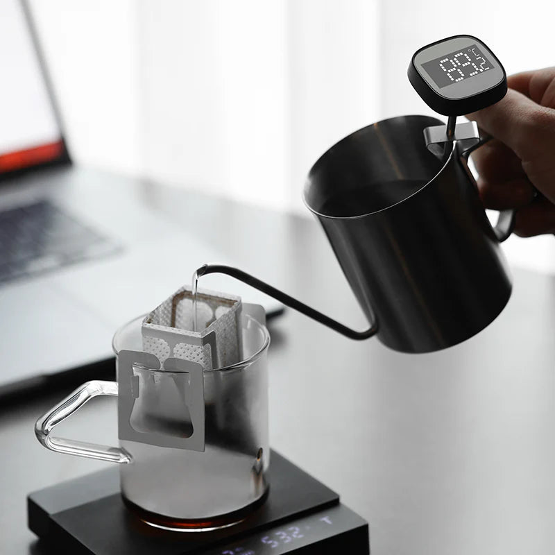 - Quick Response/Instant Temperature: It's easy to control the temperature. Generally, the best temperature for brewing coffee is between 85℃ and 92℃. With sophisticated electronic components, the digital thermometer can accurately measure the temperature during brewing coffee, helping you to measure the water temperature at any time.